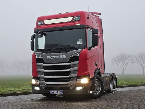 Number of axles: 3, Configuration: 6x2, Own weight: 9857 kg, Gross vehicle weight: 26500 kg, Total fuel capacity: 810 litre, 2nd fueltank, Fifth wheel height: 115 cm, fifth-wheel: Slide, Diff. locks: 1, Suspension type: full air suspension, Cabin type: High roof, Cruise control, Tacho, Digital tachograph, Airconditioning, Parking heater, Color: Red, Engine capacity: 382 Kw (512 Hp), Euro: 6, Gearbox kind: Opti-cruise, Number of Gears: 12, Add. break system, Retarder make: Scania, Power steering, ABS, ASR